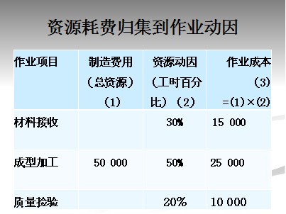 通过运用恰当的资源成本动因,把有关生产或服务的资源耗费归集到作业中心,形成成本库。