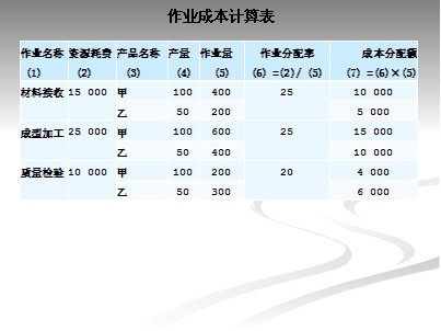按照两步制分配程序,在归集同质作业成本库后,需要从中选取恰当的作业成本动因,把各作业成本库中的作业成本除以作业动因的单位数,计算出以作业为单位的成本分配率,即作业率。